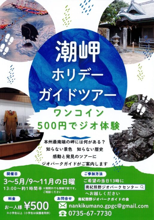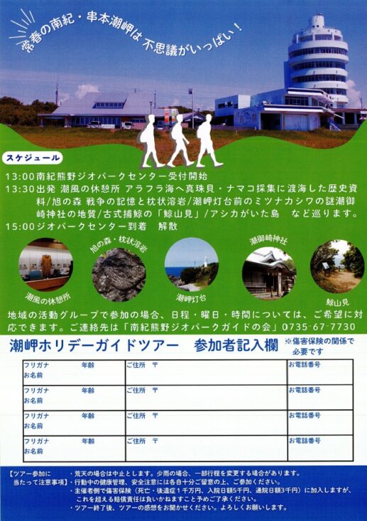 【3月から5月末まで】潮岬ホリデーガイドツアー(500円でジオ体験・事前予約不要)を開催